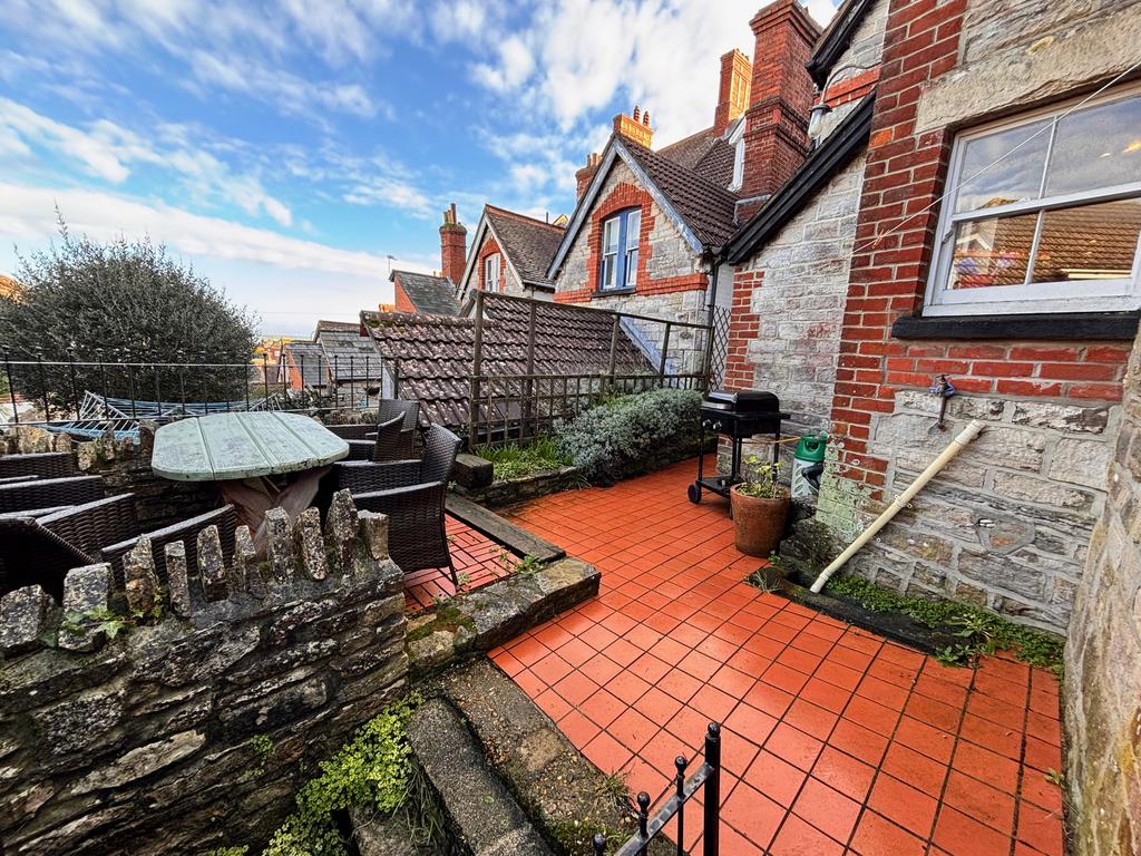 DESCRIPTION: A substantial three-storey terraced villa style Victorian house of Purbeck stone elevations with brick dressing under a clay tiled roof. The property is well presented and retains many character features. The lounge & dining room have been opened up to become a through room and there is a good-sized kitchen/breakfast room with a gas fired range. There are sea and hill views from the garden seating area and the property. An internal viewing is thoroughly recommended.
