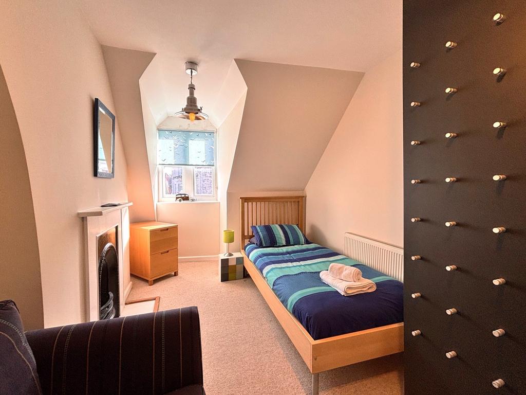 BEDROOM 4 (E): 15’10” (4.82m) x 8’6” (2.59m). Feature arch with seating area, feature cast iron fireplace, radiator, view to the sea, part sloping ceiling.