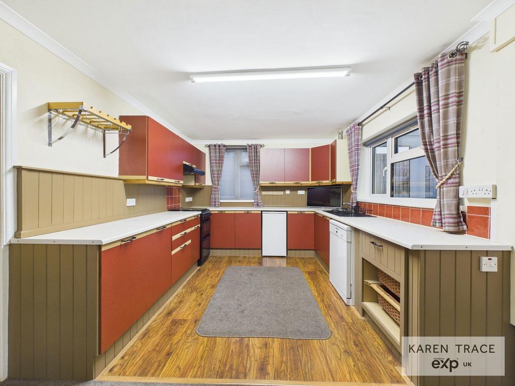 The generously sized kitchen/diner is extensively fitted with a range of base and wall units, with space for a cooker and plumbing for a dishwasher — ideal for everyday family living and entertaining.
