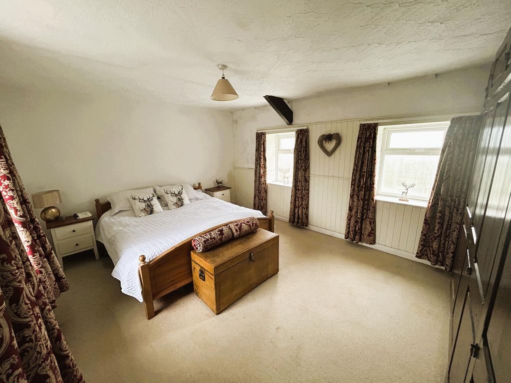 Positioned in an enviable elevated position with sweeping panoramic views across the picturesque Weardale landscape, this impressive four-bedroom detached stone-built home offers a fantastic blend of character, tranquillity and comfort. The property’s South-facing aspect ensures rooms are bathed in natural light throughout the day, while UPVC windows provide excellent insulation and frame the stunning scenery beyond them. The inviting living room, with its exposed wooden ceiling beams and newly installed efficient log burner (not shown in current photo), is open plan to the dining area, creating a warm and sociable heart to the home, ideal for family gatherings or entertaining guests. From the dining room, patio doors open to a decked seating area, seamlessly connecting indoor and outdoor living. The kitchen is a delight for both homeowners and guests, featuring classic stone flagstone flooring, robust hardwood worksurfaces, and charming exposed stone walls that add to the property’s timeless appeal. A large South-facing conservatory offers a tranquil space to relax and take in the breathtaking countryside views, while the practical utility room houses the efficient wood pellet boiler, ensuring the home remains cosy throughout the year. Upstairs, four generously sized double bedrooms provide ample space for family or visitors, each offering peaceful retreats with room for storage and personal touches.