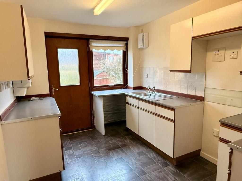 KITCHEN 11’1” x 8’5” (3.39m x 2.57m) approx.Wall and base units. Gas boiler. Xpelair extractor fan. Rear door out.