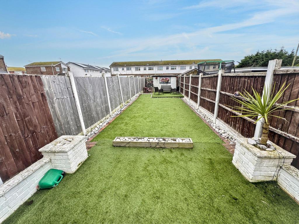 To the front is a block paved pathway and open plan garden laid to artificial grass. The rear garden is surprisingly lengthy, fully enclosed with timber fencing and mainly laid artificial grass. Rear access to the single detached garage facility.