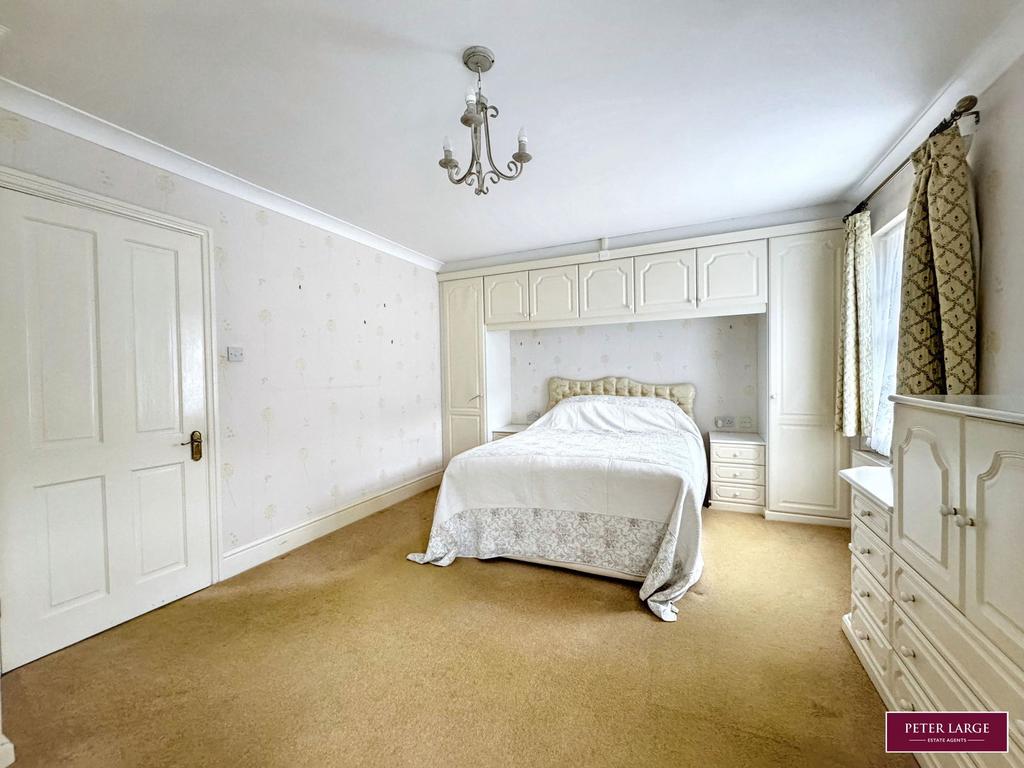 Having an extensive range of fitted and built-in wardrobes, top box storage, matching bedside cabinets and drawer unit, two double panelled radiators, two double glazed sash window enjoying an outlook over the extensive rear garden.