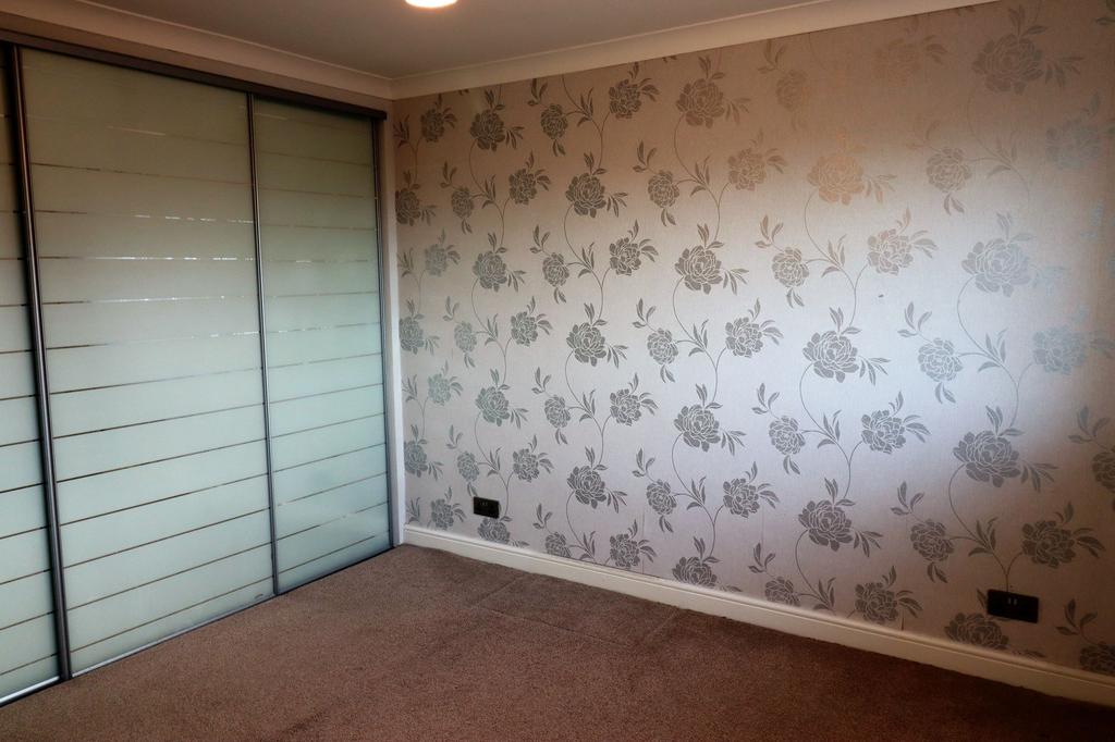A rear aspect bedroom with coving, radiator and built in wardrobe with triple sliding doors (including safe).