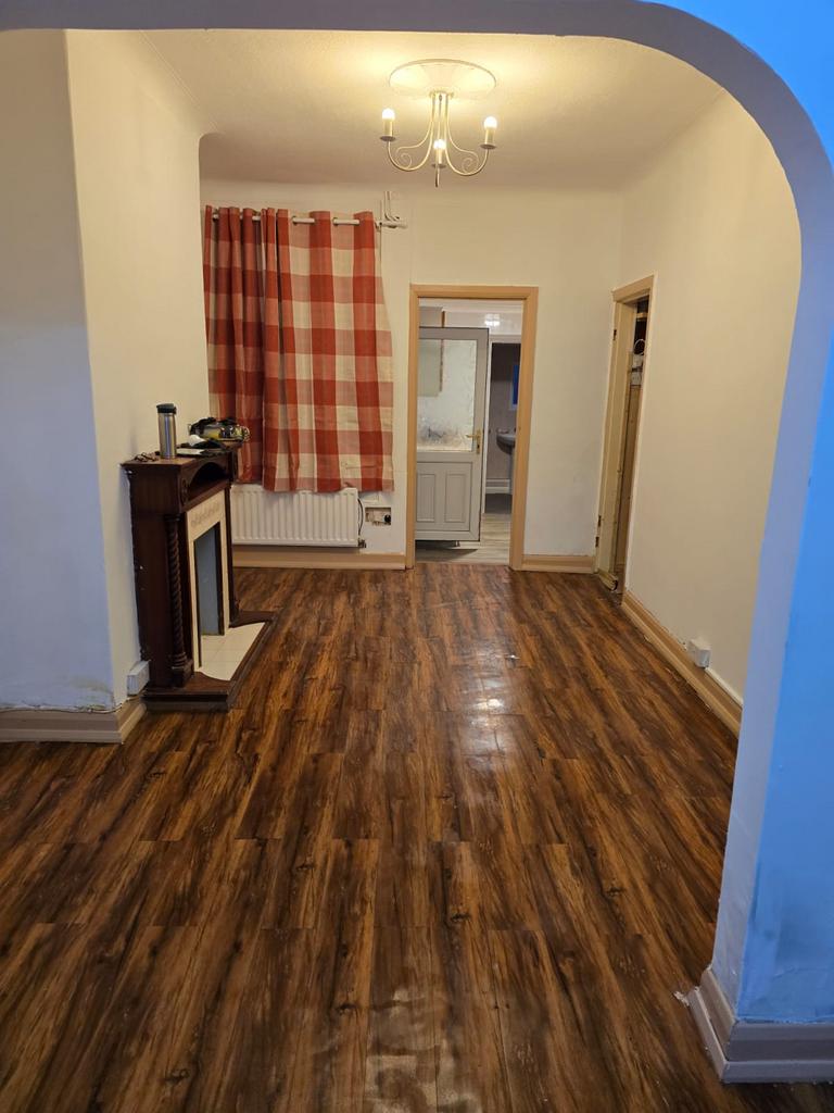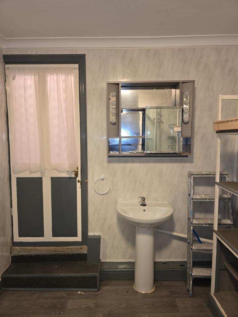 The property comprises a spacious reception room, a fitted kitchen, and a family bathroom featuring both a full-sized bathtub and a separate shower enclosure, offering practical and flexible living for families.