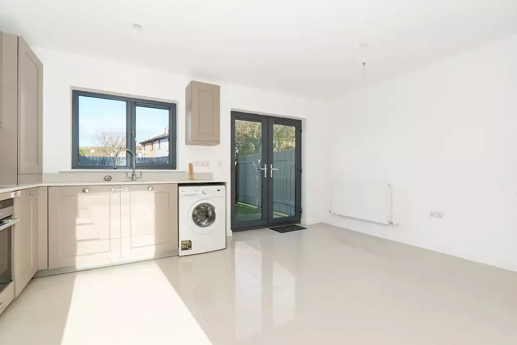 The ground floor comprises a welcoming living room and a modern dining kitchen with French doors opening onto the rear garden, providing an ideal layout for both everyday living and entertaining.
