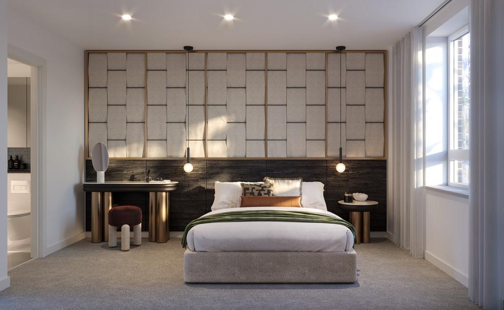 Interiors at Fero House are designed for calm, comfortable living, with a choice of light or dark palettes and refined finishes throughout. High-grade materials, fittings, and fixtures are paired with Bosch appliances, while bathrooms are completed with elegant tiling. Each kitchen is uniquely crafted with sleek composite stone
