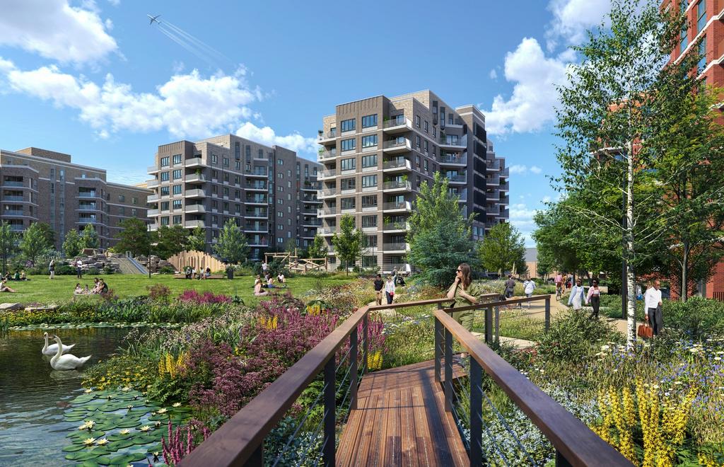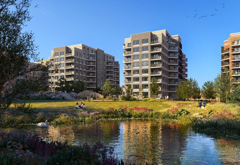 Enjoy abundant views across green spaces, overlooking the peaceful private podium garden and the picturesque lake in the 1.8 acre Garden Square