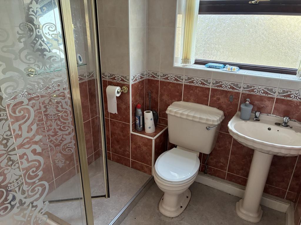 Bathroom Having shower cubicle, pedestal hand basin and low level WC. Double glazed window and central heating radiator.