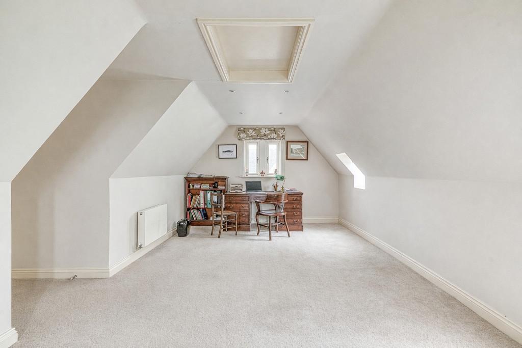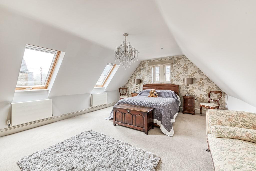The second floor landing provides access to the remaining bedrooms and bathroom, with built in cupboards housing storage and the hot water tanks. The fourth bedroom is a double room with triple aspect windows, roof window and loft hatch access. The fifth bedroom is another double with dual aspect windows, built in wardrobes and loft hatch access. The family bathroom is fitted with a wash hand basin, WC and jacuzzi bath with shower over.