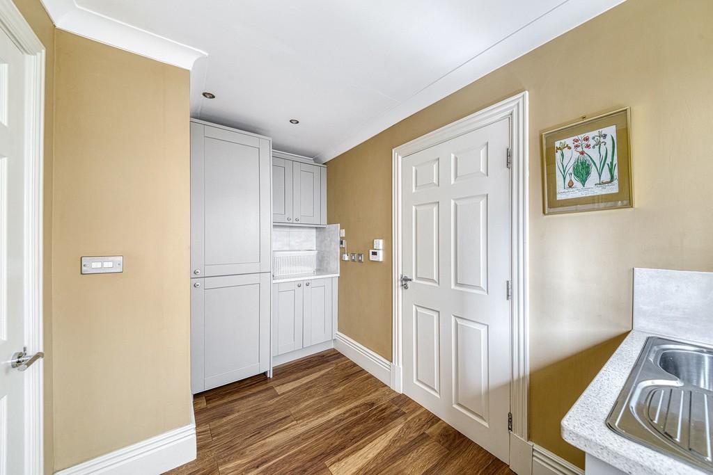 The utility room continues the quartz work surfaces and includes a stainless steel sink with drainer and mixer tap, storage cupboards, a chrome ladder style heated towel rail, side access door and electric underfloor heating.