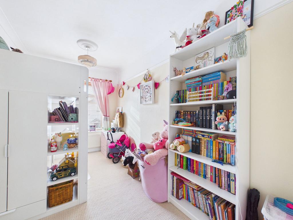 BEDROOM THREE A well sized fourth bedroom on this floor, ideal as a guest room, home office, study or hobby room. uPVC double glazed window and gas central heating radiator.
