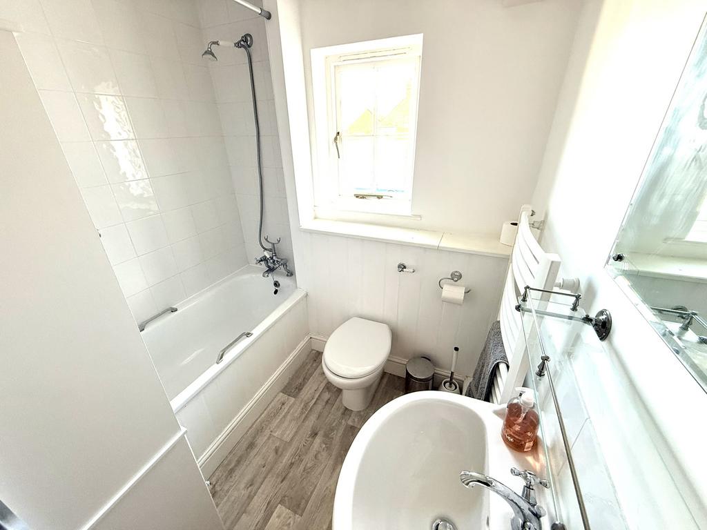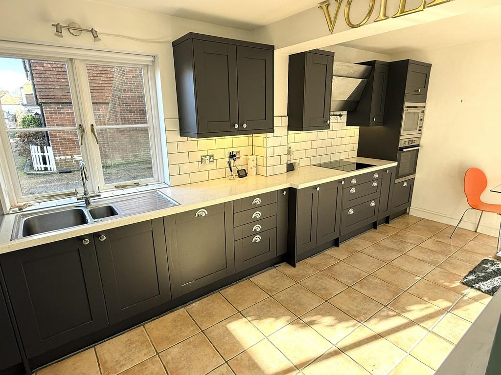 Description: This well presented link attached house is situated in the heart of Rye town centre. The property is accessed from Jarretts Close over a private well maintained mews accessed from Market Road. 6 Jarretts Close is accessed through a central canopied porch front door leading into an entrance hall which at the rear is a downstairs cloakroom/WC with space and plumbing for a washing machine. From the hallway is access into the kitchen/breakfast room fitted with dark grey shaker units, laminate worktops, stainless steel sink, ceramic induction hob, single oven, integrated microwave, and integrated dishwasher and benefits from a tiled flooring and French patio doors leading out to a private paved south facing garden. The dining room adjoins the kitchen / breakfast room, and has a south facing window overlooking the garden and access door leading back to the entrance hall. Also accessed from the hallway is the living room, with triple aspect windows and large bay window, and coal effect gas fire with stone mantle piece.