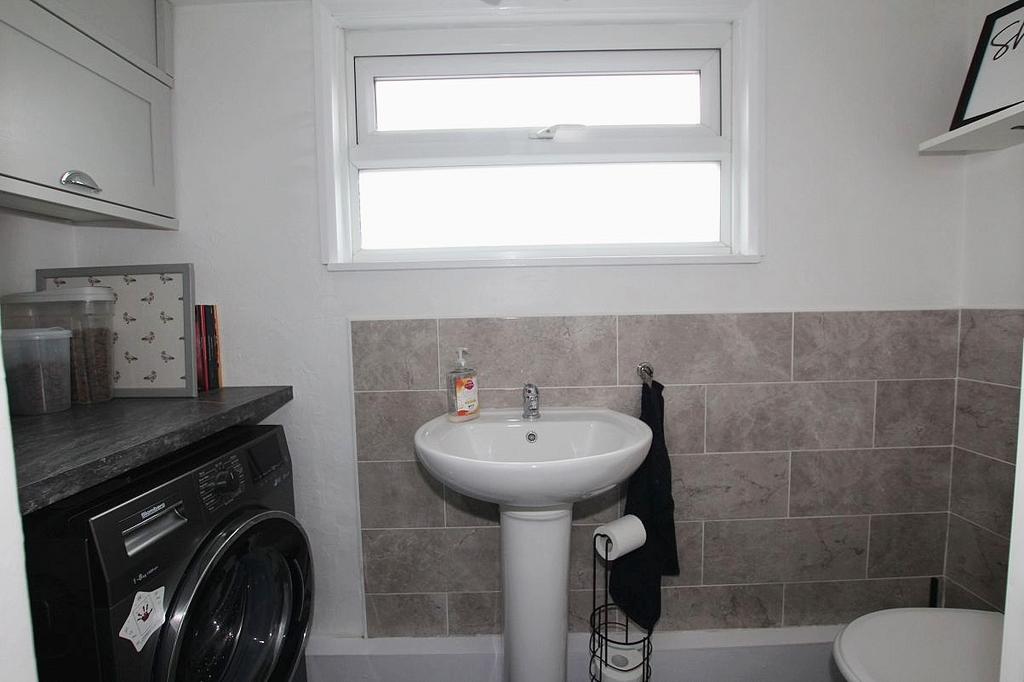 Utility/Cloakroom: Obscure double-glazed window to rear elevation, low level WC, wash hand basin, radiator, half tiled walls, space and plumbing for washing machine.