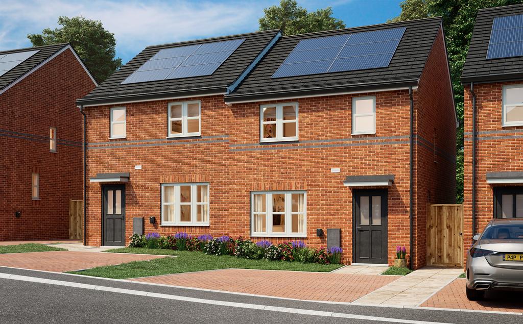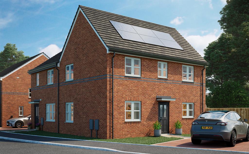 Each property comes with carpets and vinyl flooring already fitted, and outside you’ll find a private rear garden, which is ready turfed, also included to this home are solar panels for improved energy efficiency, plus parking with an EV charging point.