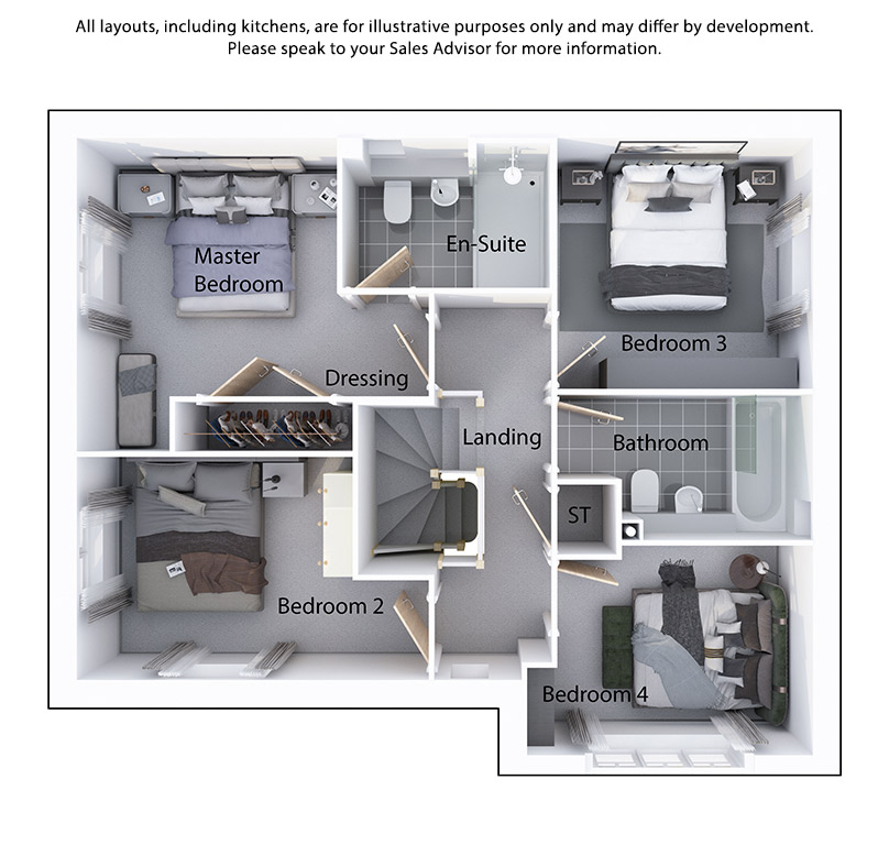 With four double bedrooms, en suite and family bathroom, The Harewood has a versatile upstairs layout which can be personalised to match your lifestyle. The Master Bedroom boasts a luxurious en suite shower room featuring modern fixtures and fittings, including rainfall shower. Fitted wardrobes to the dressing area deliver a stylish yet practical aesthetic when unwinding at the end of the day and getting ready in the mornings.