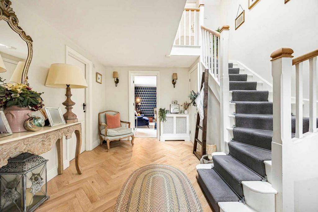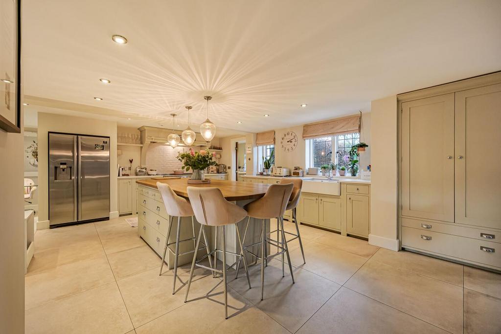 The property blends period character with contemporary design. At its heart is a superb open‑plan kitchen, dining and snug area, with direct access to a practical boot room/utility and a useful study nook. A bright central hallway leads through to the formal living room with a cosy log burner—perfect for relaxed evenings—along with an additional snug providing further family space.