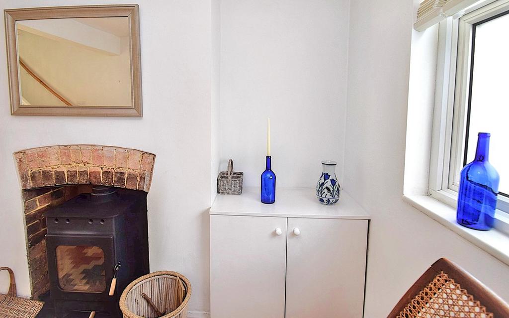 23' 3" x 12' (7.09m x 3.66m) chimney breast fitted with a 8kw wood burning stove, granite hearth, meter cupboard, engineered oak floor incorporating a mat within a mat well, sealed unit double glazed window to the front with obscure glazing to the lower part, radiator, contemporary style wall radiator, stairs to the first floor, halogen down lighting, sealed unit double glazed door leads to the rear, opening leads through to the kitchen.