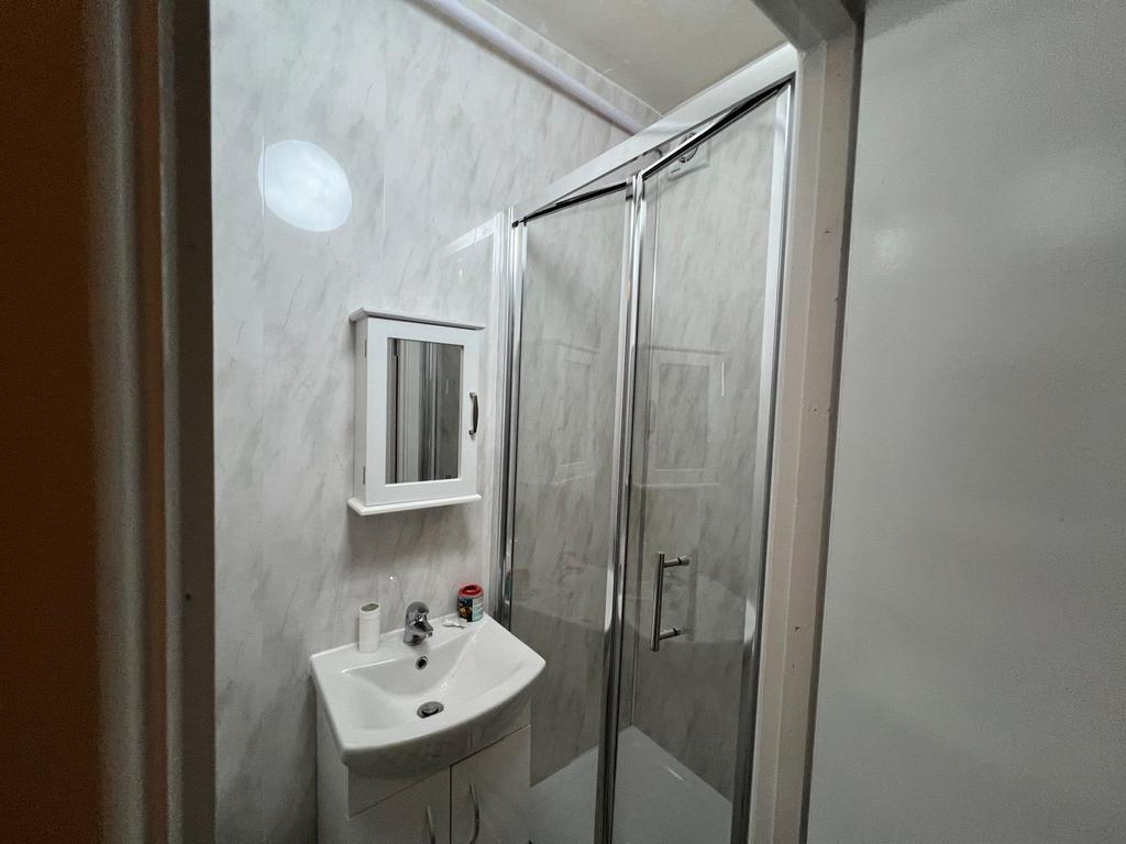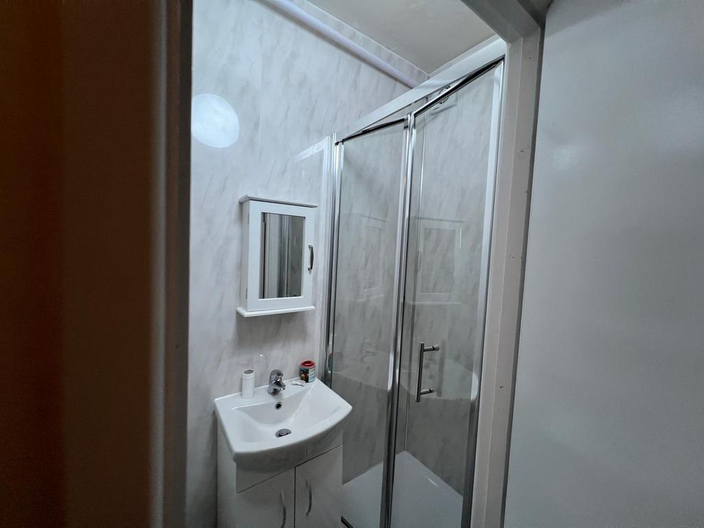 - Modern shower room with sink & vanity cabinet
