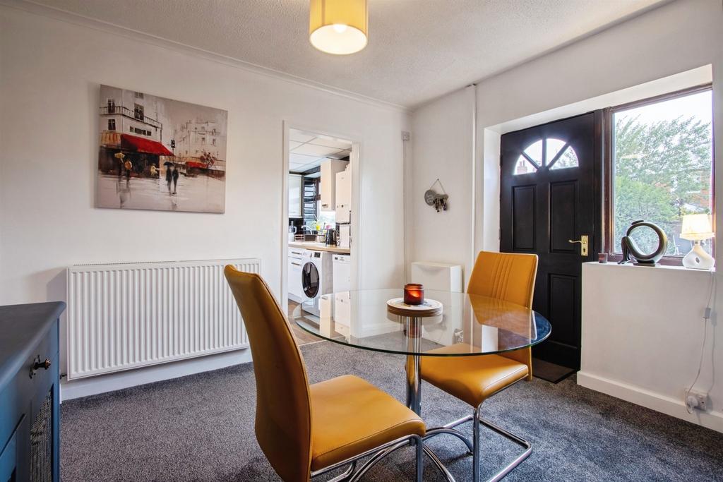 Dining room which is carpeted throughout, window and door to the rear, central heating radiator.
