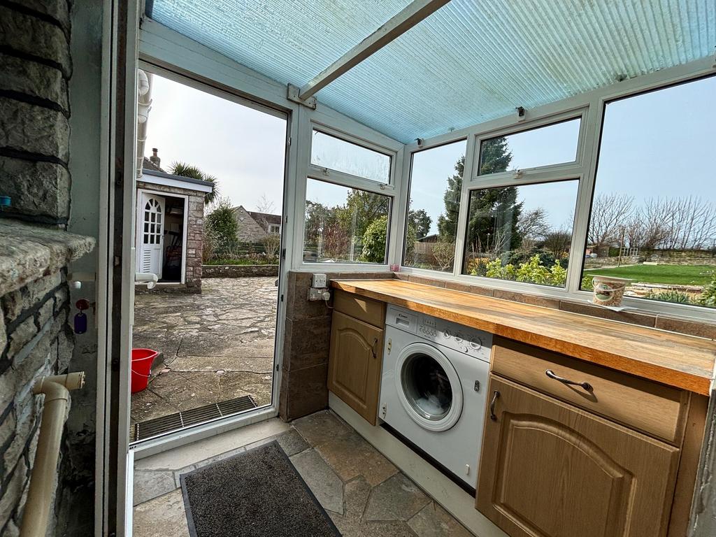 UTILITY LOBBY: 6'4" (1.93m) x 6' (1.83m). Wooden work surface with space and plumbing for washing machine and cupboards under. Double glazed door to the rear garden.