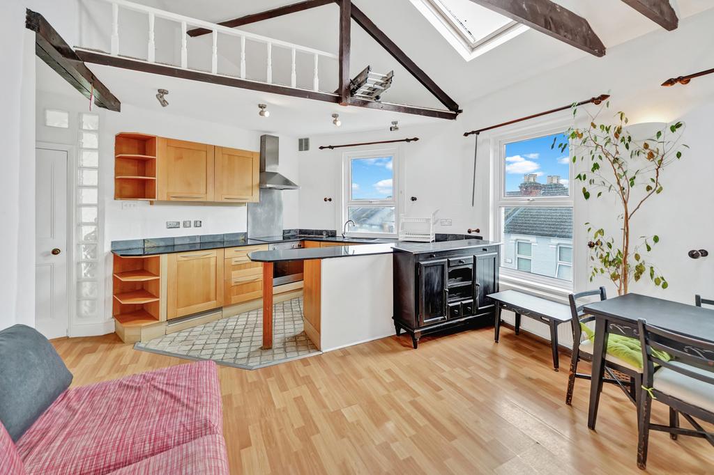 A delightful first-floor flat now available, featuring a bright open-plan kitchen, a comfortable double bedroom, and a three-piece bathroom.