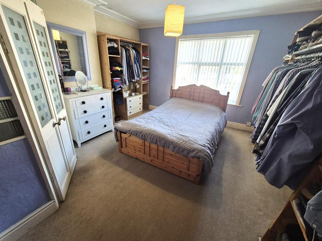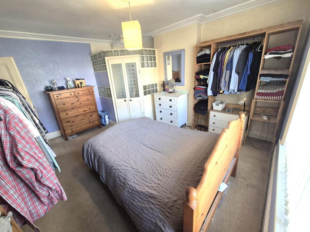 The master bedroom is spacious and enjoys ample natural light from its window. There is plenty of wardrobe space and a doorway leading to an ensuite shower room, adding to its functionality and comfort.