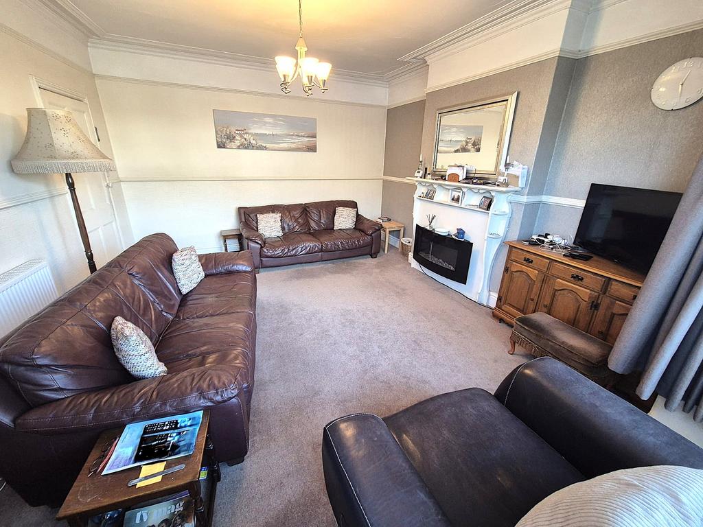 This comfortably sized lounge features a large bay window that allows natural light to fill the space, creating a warm and inviting atmosphere. It is well-proportioned to accommodate relaxing seating arrangements with a focal fireplace.
