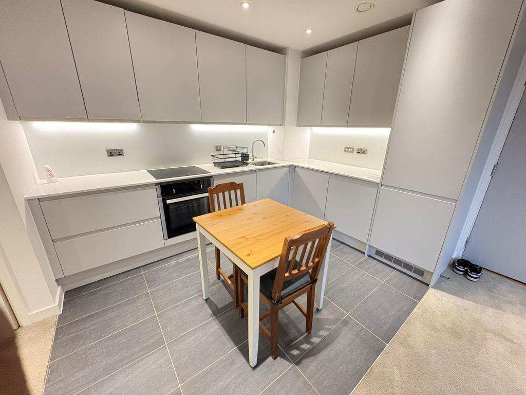 This one bedroom apartment has open plan kitchen and living area, floor to ceiling window, furnished with modern and sleek furniture.The kitchen has a integrated oven and hob, washing machine, dishwasher and fridge freezer.