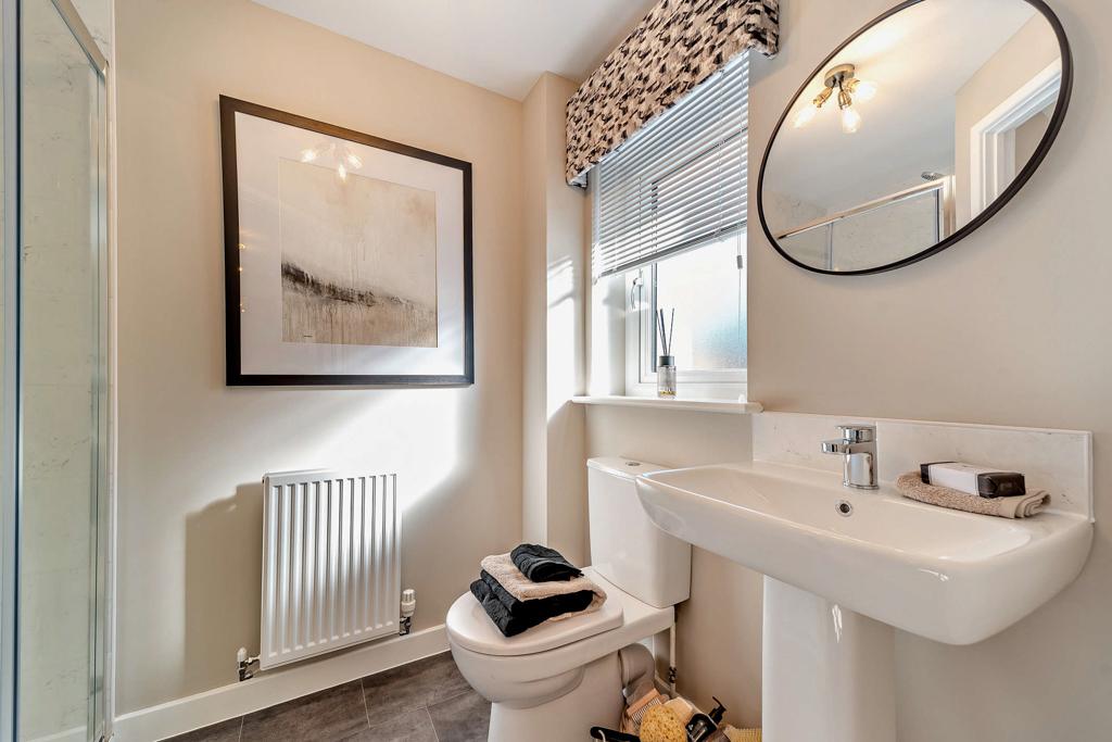 The Kilda is a spacious and airy, well planned out three bedroom home. It offers luxurious family accommodation with an affordable price tag. The ground floor boasts an open plan kitchen/dining area, with french doors, providing a light and airy space perfect for entertaining, whilst the rest of the ground floor consists of a contemporary living room boasting a fabulous bay window and a convenient downstairs w.c. The upstairs features a superb master bedroom with an en-suite bathroom, a further double bedroom, a single bedroom and a family bathroom to complete the floor. Tenure: Freehold. Council tax: Determined by your local authority. Estate management fee: An annual management charge of £113.76 and factor float of £100 will apply.