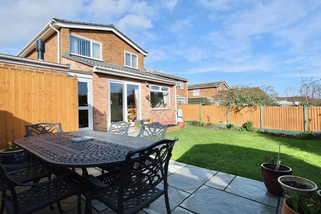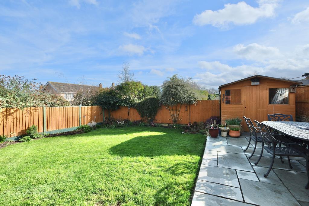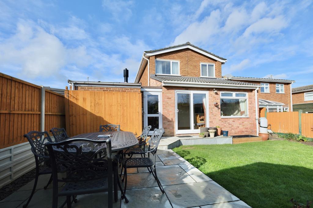 Off the rear there are patio doors leading onto a superbly maintained garden. There is a fully fenced surround and large wooden garden shed along with ample patio seating area. A small fenced off area contains the oil heating storage facility. At the front there is a large brick double driveway, leading to a single garage with electric roller door.