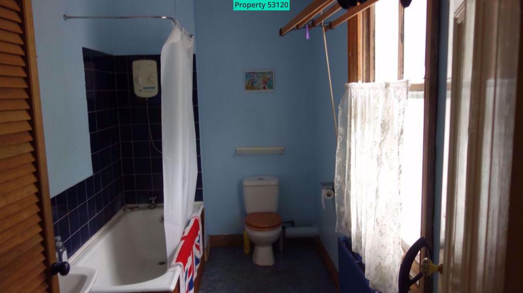 The bathroom (downstairs) has a bath, electric shower, wc and hand basin.