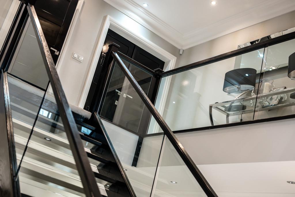 The property is entered through a solid wood high-security door into a magnificent triple-height reception hall, finished with marble flooring and a contemporary staircase featuring glass balustrades. The sense of light, space and quality is immediately apparent.