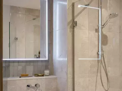 High ceilings, large windows, and tasteful fixtures enhance the overall ambiance, making each apartment a sanctuary of modern elegance. Spacious bathrooms feature built-in storage, walk-in shower or bathtub & rainfall shower.