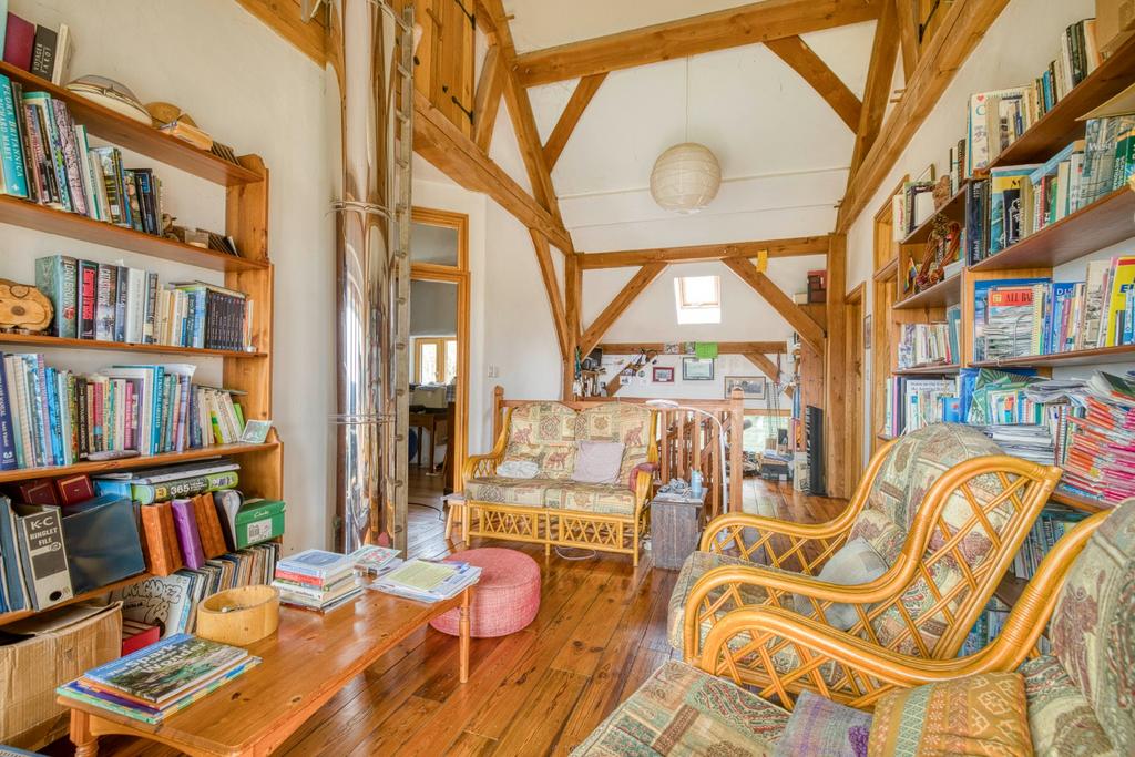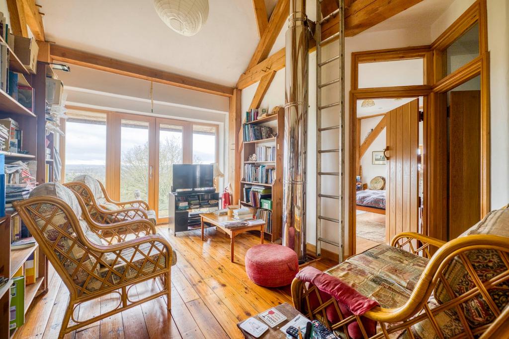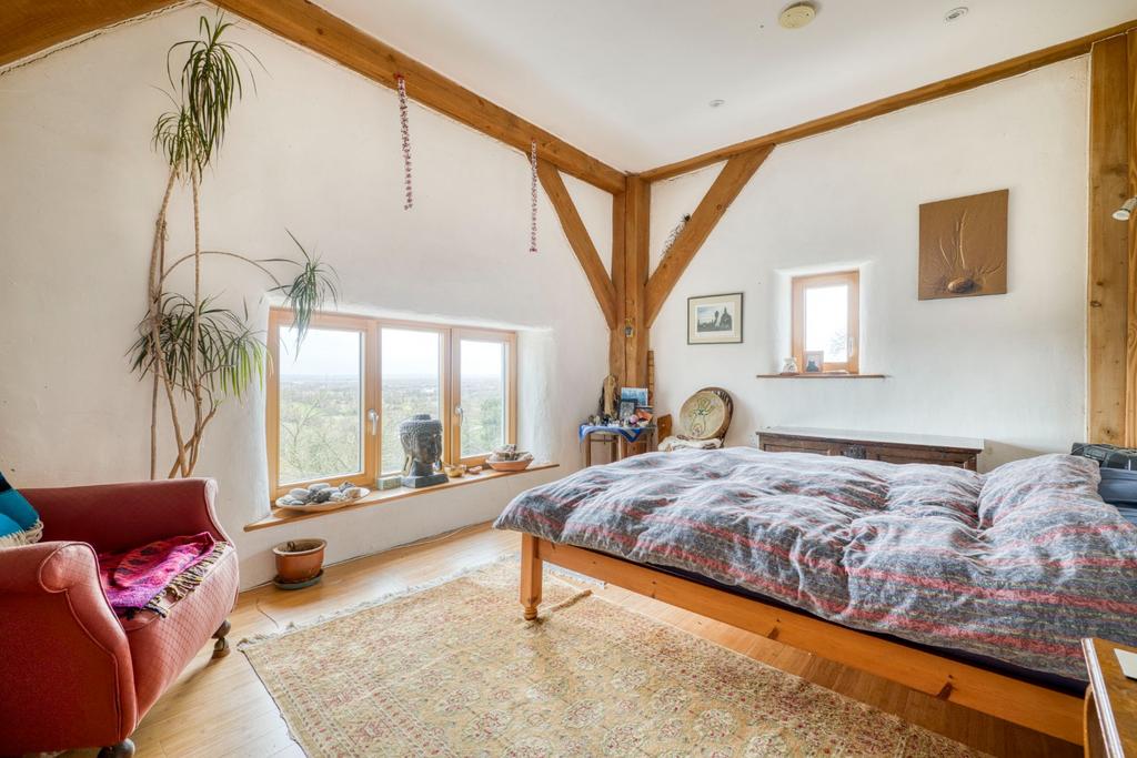 Constructed using highly efficient strawbale methodology, which uses tightly packed wheat straw bales as sustainable, high-insulation building blocks for walls, which is then in turn plastered with clay, the property offers impressive thermal performance alongside a wonderfully tactile, natural aesthetic. The home is centred around a beautifully proportioned open-plan living space that forms the true heart of the home. The house is arranged over two floors with emphasis on the views to the South. The flexible accommodation is currently arranged as three bedrooms and two bathrooms on the first floor.