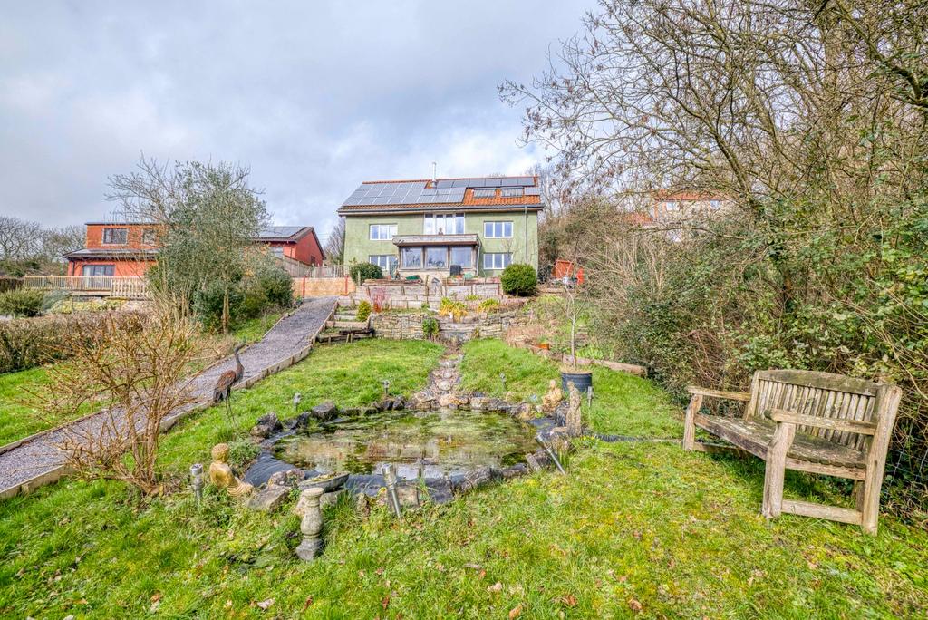 - Raised beds and garden with pond and mature trees