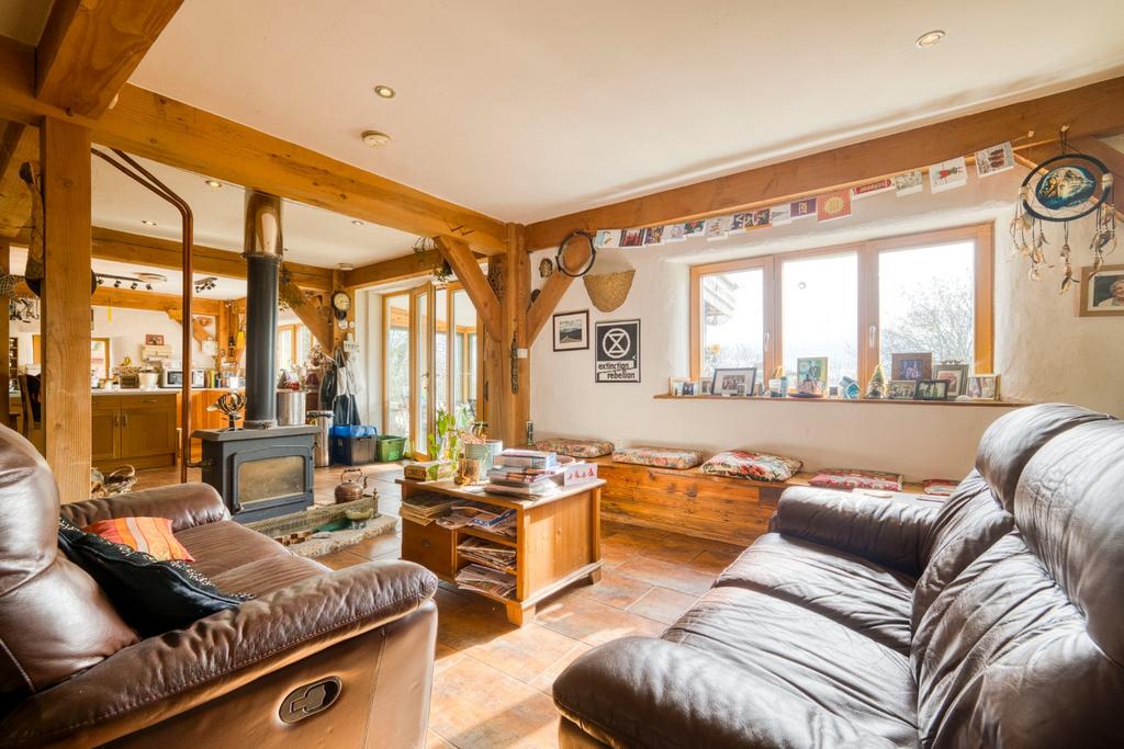 An exceptional south-facing eco home, offering flexible 2/3 bedroom accommodation centred around a light-filled open-plan living space with stunning south facing views. The property is of straw bale construction, combined high-performance triple-glazed hardwood windows, heat recovery ventilation and as well as a woodburner. With an advanced sustainable specification including PV and thermal solar panels, Tesla Powerwall with EV charging point, rainwater harvesting supplying the washing machine and composting toilet, and a thoughtfully planted garden with fruit and native trees — creating a beautifully efficient and forward-thinking rural home.