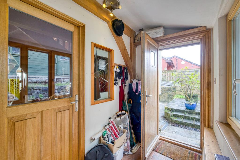 A utility room complete with shower, toilet and plumbing for a washing machine which can be run using the harvested rainwater should you wish or switched to mains water. A large walk in cupboard housing the electrics and useful storage/larder cupboard.