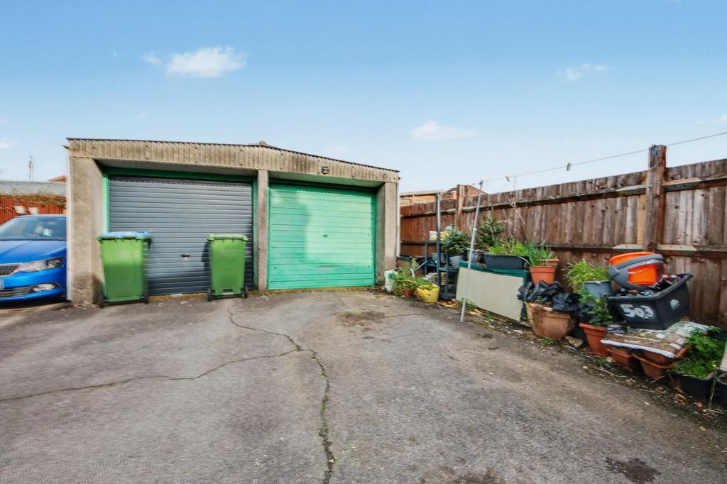 To the rear of the property, there is a hard-standing driveway providing off-road parking for one vehicle, which leads to a garage with an up-and-over door.