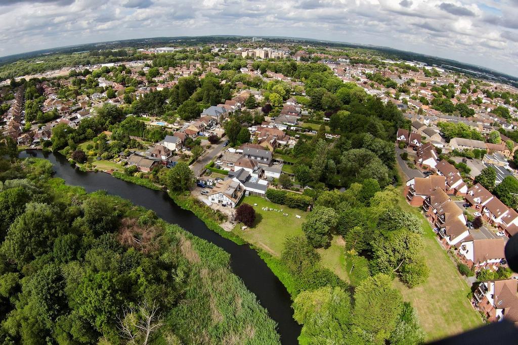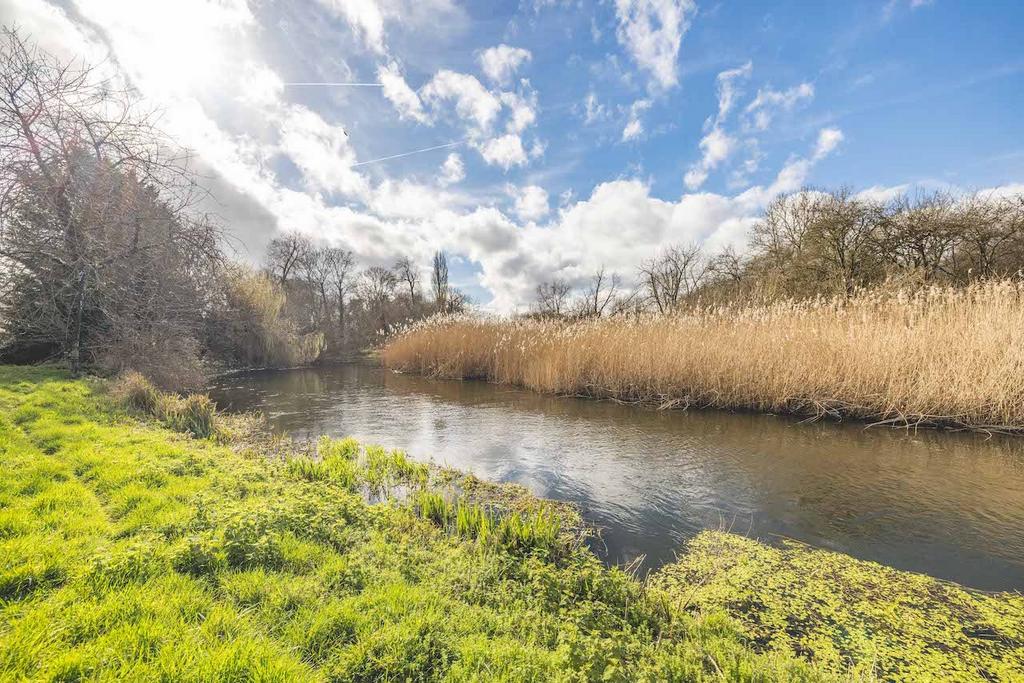 Outside – The property is complemented by beautifully maintained gardens to both the front and rear. A paved driveway to the front provides off-street parking for multiple vehicles. The patio extends around the side of the home, creating a substantial seating and entertaining area that enjoys picturesque views of the River Colne, offering one of the most tranquil settings in the area. The remainder of the expansive rear garden is mainly laid to lawn, with the Frays River bordering the rear boundary.