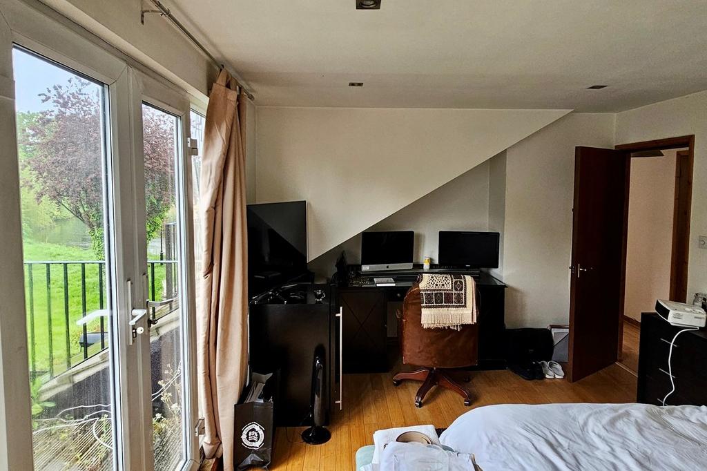 Property – The ground floor comprises an inviting entrance hallway, a well-appointed kitchen/dining room, and an impressive 23ft x 20ft dual-aspect living room with French doors opening out to views over the River Colne. There is also a four-piece family bathroom, two of the five double bedrooms, and a study, which could alternatively serve as a sixth bedroom or formal dining room. To the first floor are three generously sized bedrooms, all flooded with natural light. The principal and second bedrooms both benefit from private balconies overlooking the garden, along with a modern three-piece family bathroom.