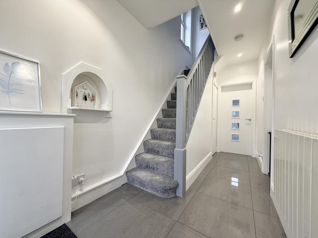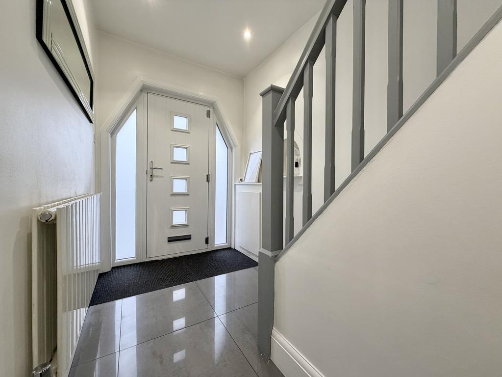 Composite door to front aspect, radiator and stairs to first floor with storage under.