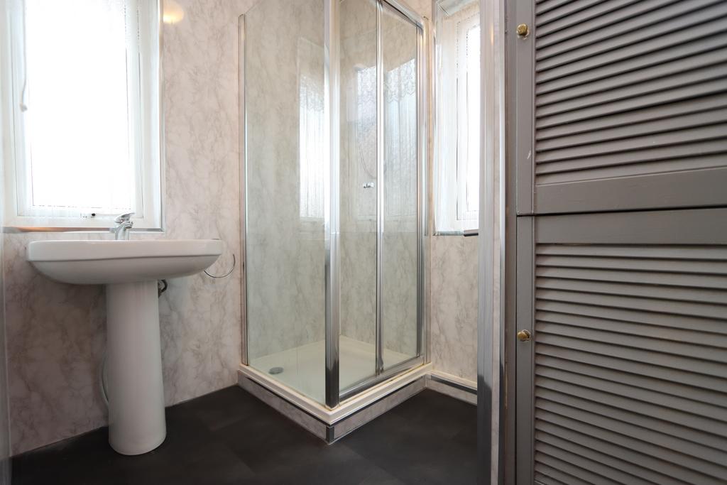 SHOWER ROOM: panelled walls, panelled shower cubicle with ‘Triton’ shower, pedestal washbasin, radiator, 2 uPVC double glazed windows and cupboard containing gas fired central heating boiler & hot water tank.