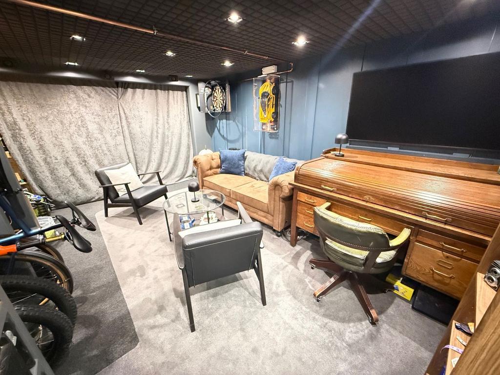 With insulated roller shutter door, baxi combination condensing boiler, hot and cold water taps, built in shelving, LED built in spotlights, WIFI and programmable controlled.