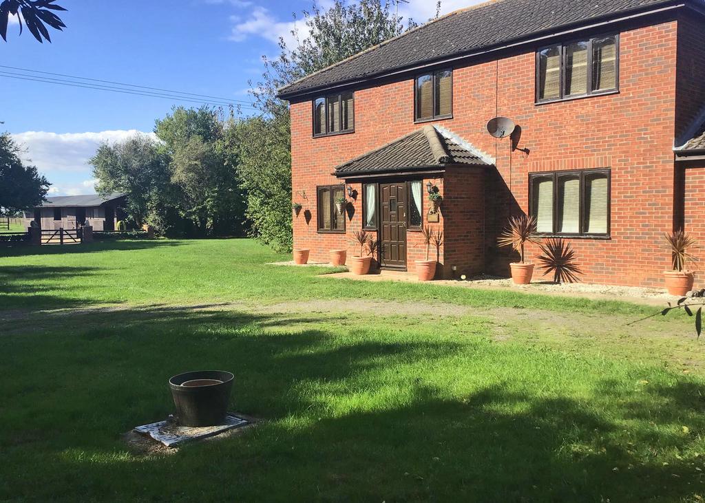 A four bedroom detached family home with ten stables, barns, paddock grazing and excellent hacking, with approx. 11 acres (further land available) and no upward chain.