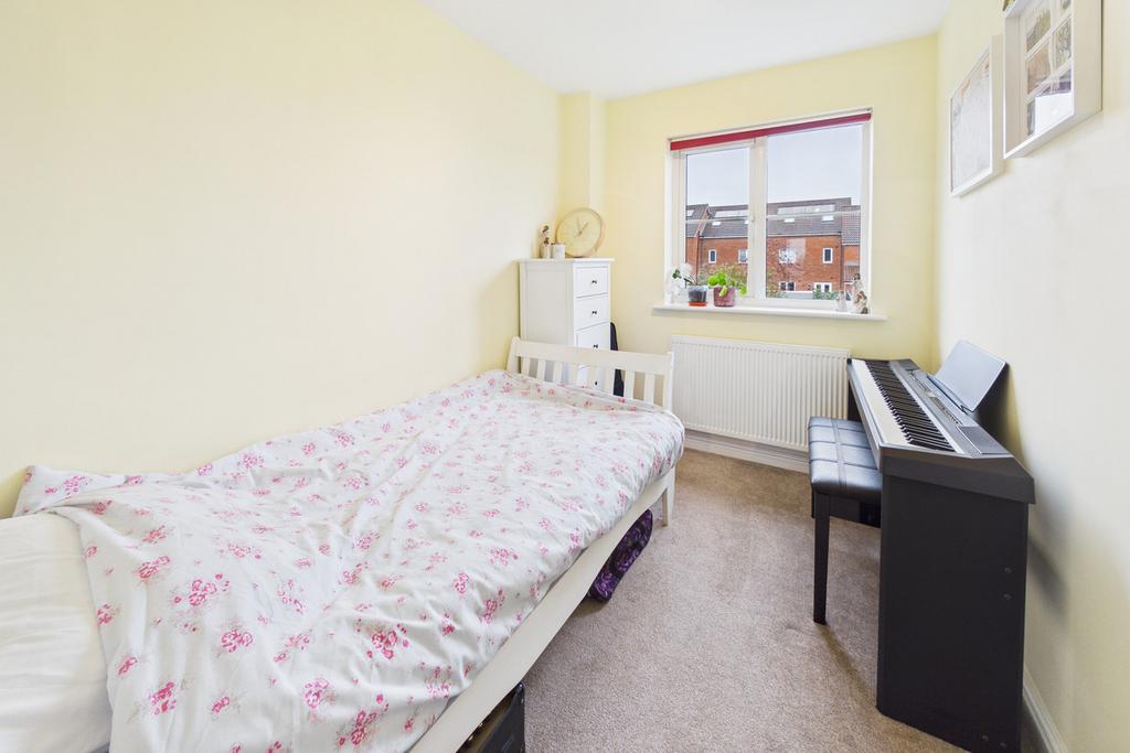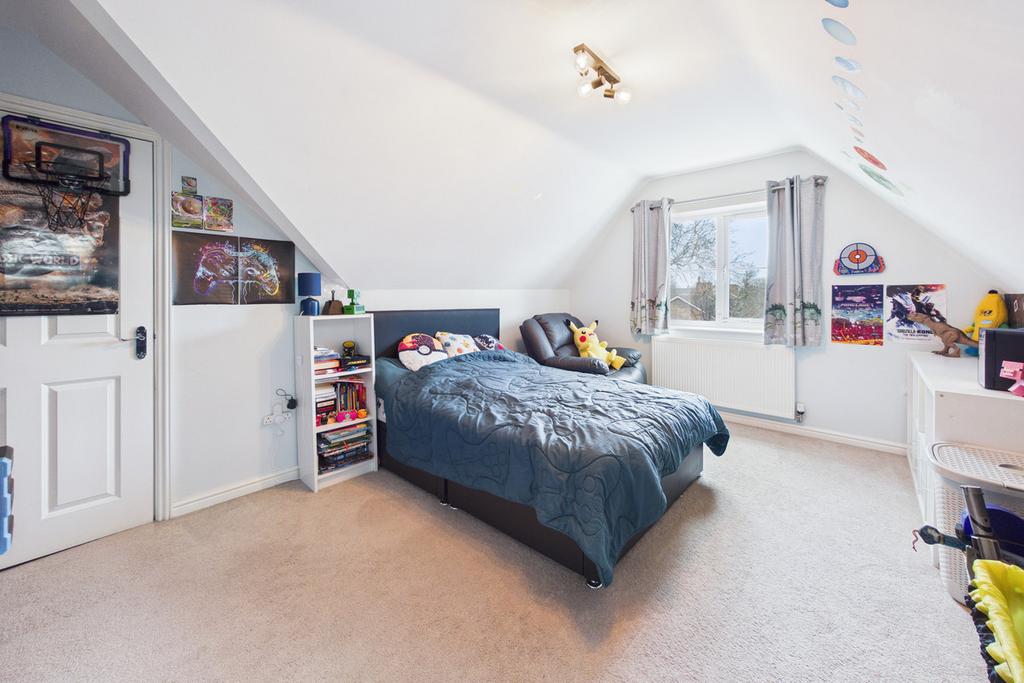 The first floor comprises a good-sized living room, the principal bedroom with a built-in wardrobe and an en-suite shower room, and bedroom four. From the landing, stairs provide access to the second floor.