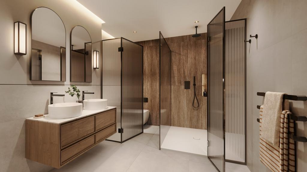 The principal bedroom suite benefits from fitted wardrobes and a private en-suite bathroom, while two additional bedrooms provide flexibility for guests, family members or a dedicated home office. A second bathroom, a separate utility area and generous storage throughout the apartment add practicality to the elegant design.