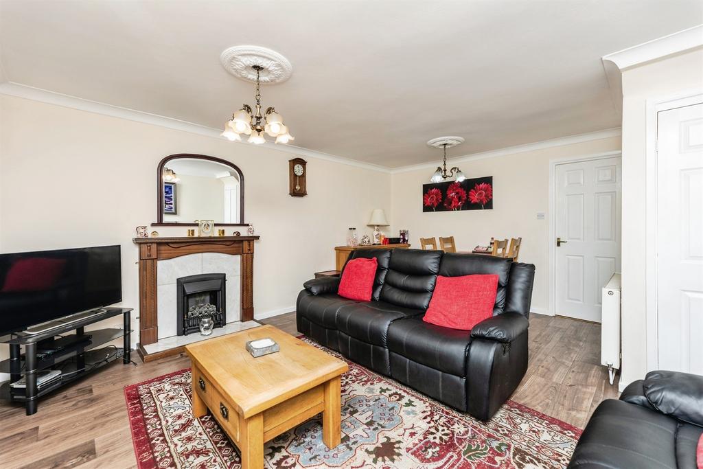With a double door to the rear, under stairs storage, gas fire with wood and tiled surround, laminate flooring, gas central heating radiator and a window to the rear.