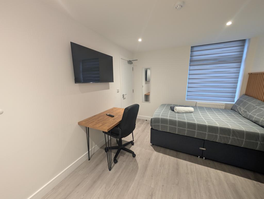 This spacious en-suite room in a modern 6 bed HMO comes fully furnished, including a Hisense TV for your personal use.