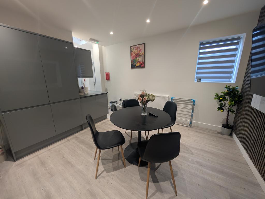 The dining space also includes a wall mounted large TV, perfect for relaxing or socialising with housemates.